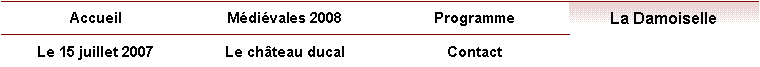 La Damoiselle, qui a 20 ans, sera la reine de la fête médiévale. Elle sera à la table d’honneur du banquet et participera, plus particulièrement, à la parade et au tournoi de chevalerie.